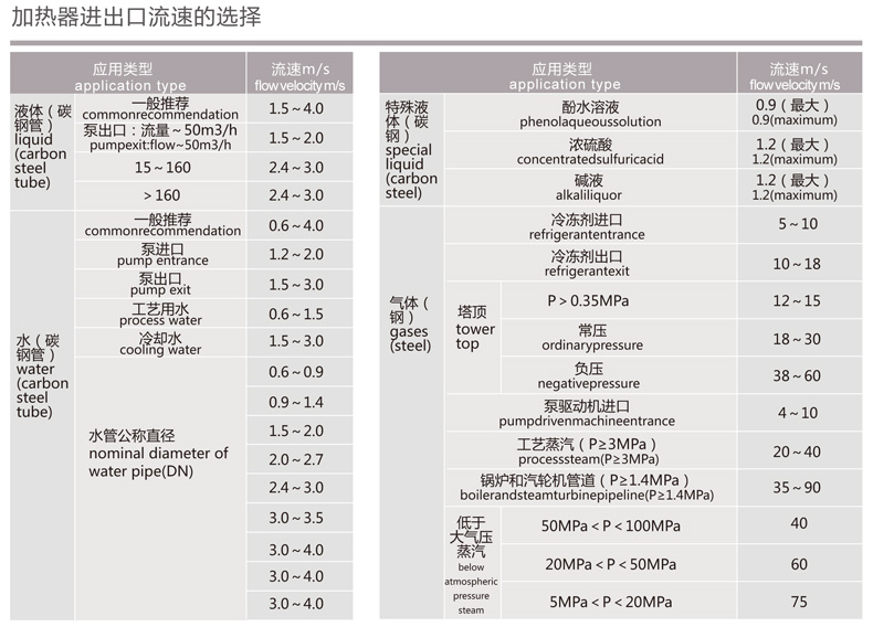 P=E·C·ρ·Q·△T P:介質(zhì)升溫所需功率(W) C:介質(zhì)比熱(J/g·℃ ) ρ:介質(zhì)比重(g/cm3) Q:介質(zhì)體積流率(cm3/s) △T:介質(zhì)輸出口與輸入口的溫差(℃) E:安全系數(shù)取1.05-1.3